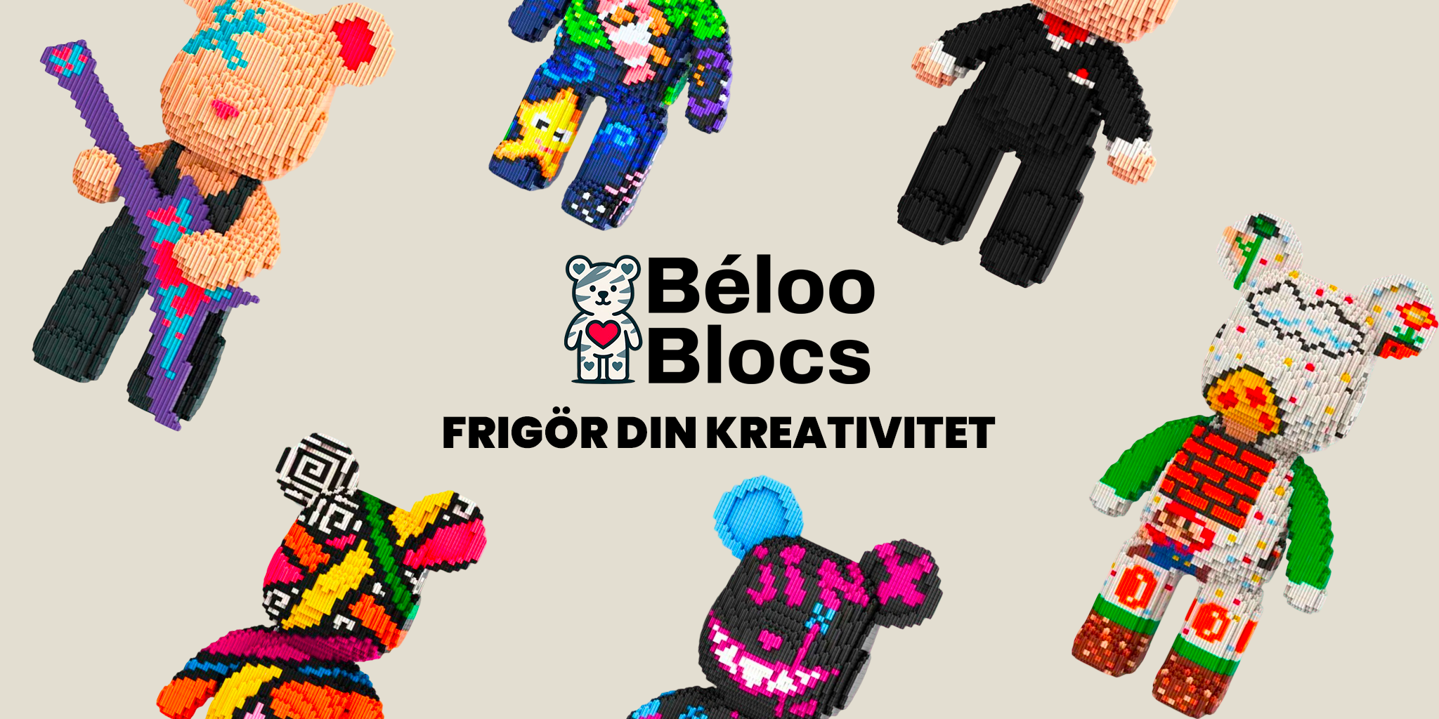 BélooBlocs™ erbjuder dig en verklig paus från vardagen. Sätt ihop tusentals mikrobitar för att skapa denna jättelika björn och låt samtidigt sinnet komma till ro. En avkopplande aktivitet, fri från skärmar och vardagens brus, som inbjuder till lugn och kreativitet.